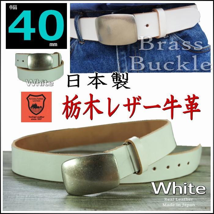 ホワイト 白 レザーベルト メンズ 本革 40mm 幅 日本製 栃木レザー 一枚革 真鍮製トップバックル ビンテージカラー Ynw エリア27 通販 Yahoo ショッピング